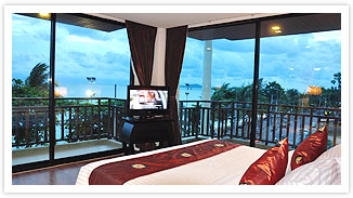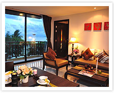 | Luxurious Family Suite offer a spacious living room & dining room, 2 king-sized bedrooms, 2 bathrooms and private beachfront balcony. A foyer leads into the elegant living area which is facing beachfront view with wide glass window.