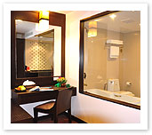 beautifully furnished. Suites are situated on the 2nd to 5th floors ensuring best views, and offers well equipped kitchen with microwave and pantry. Spacious bathroom with glass wall complete with luxury shower, bathtub and a variety of toiletries. Grand Sea View Deluxe extend more space of kitchen corner. Available in King or Twin bed variations. |